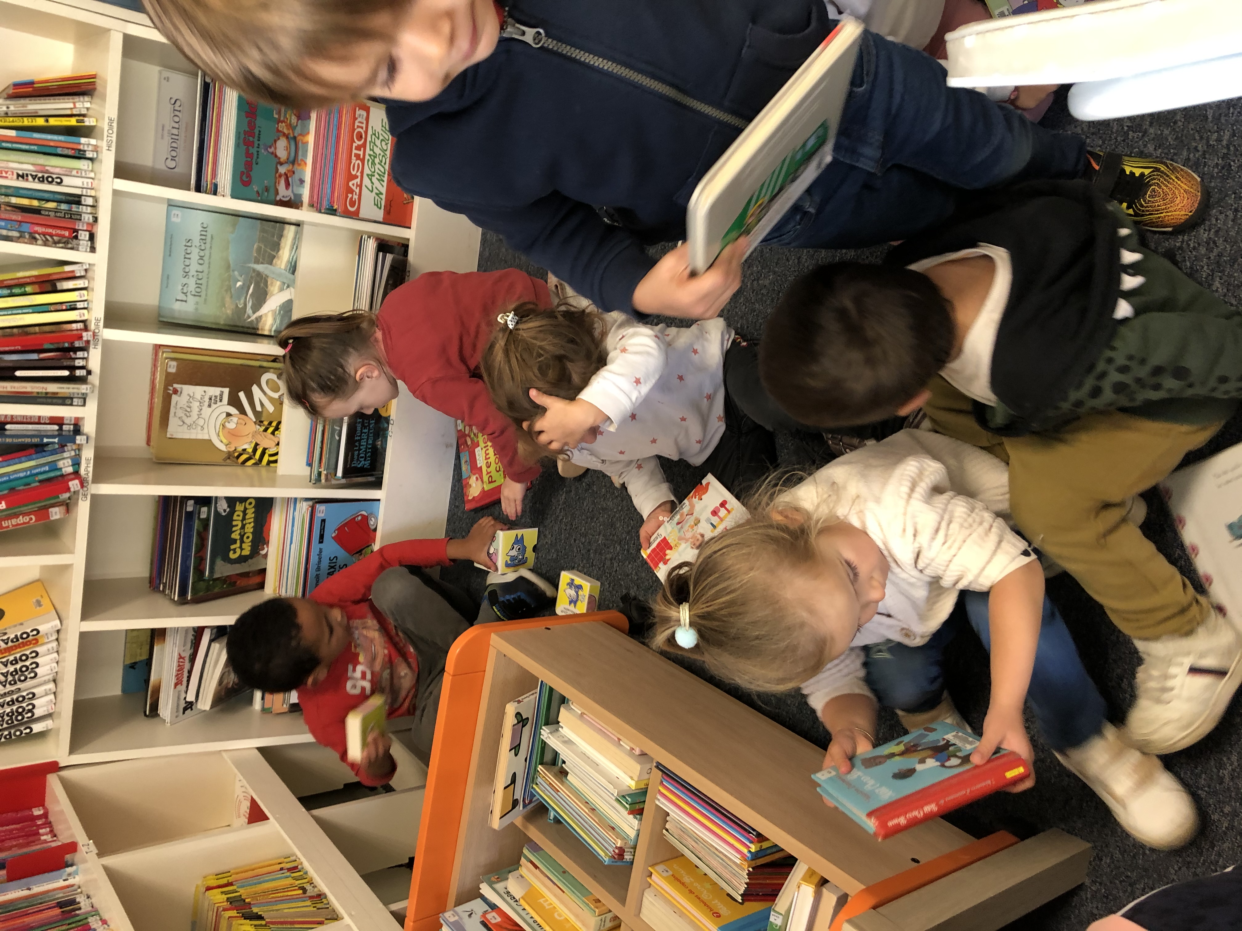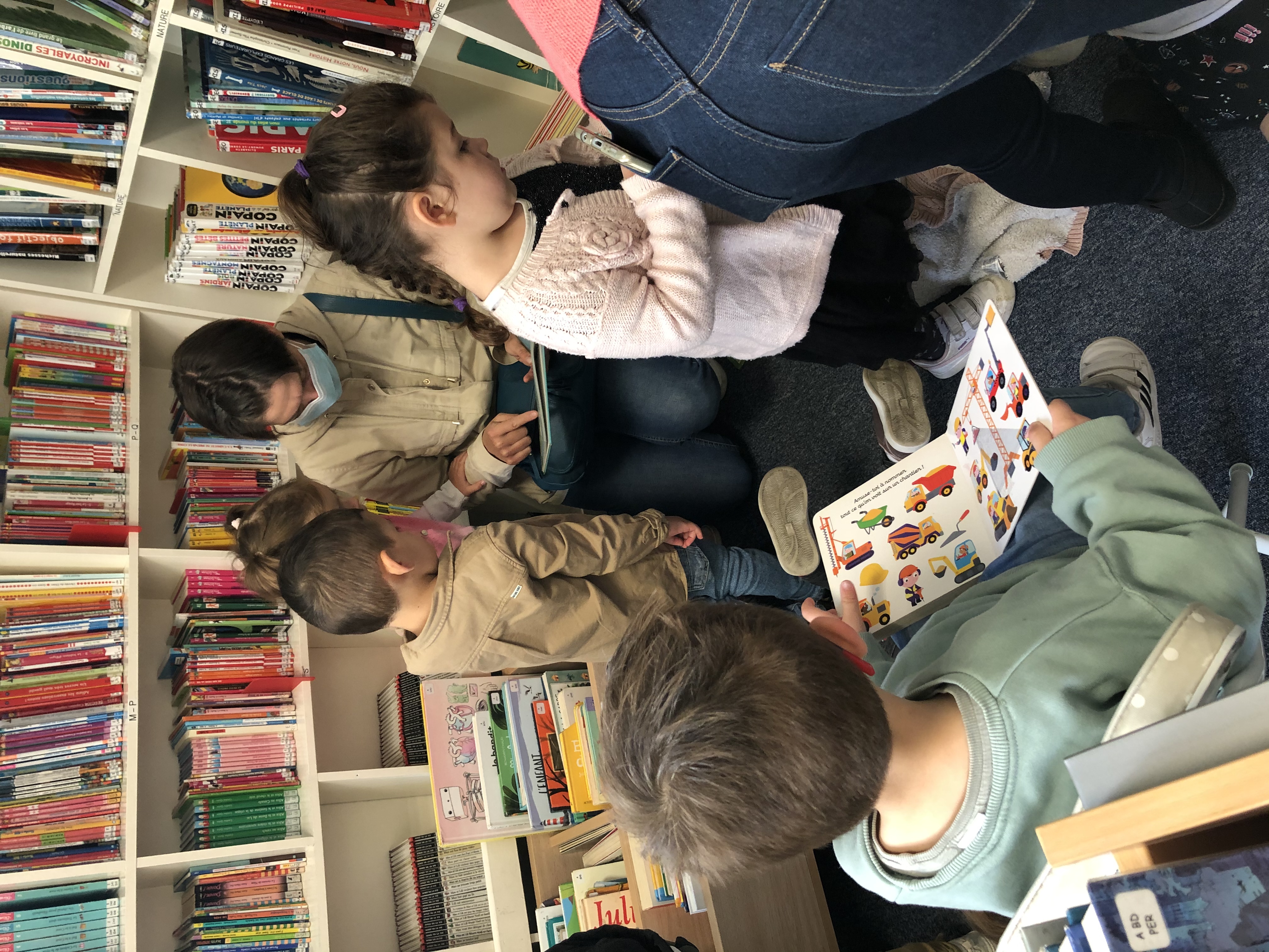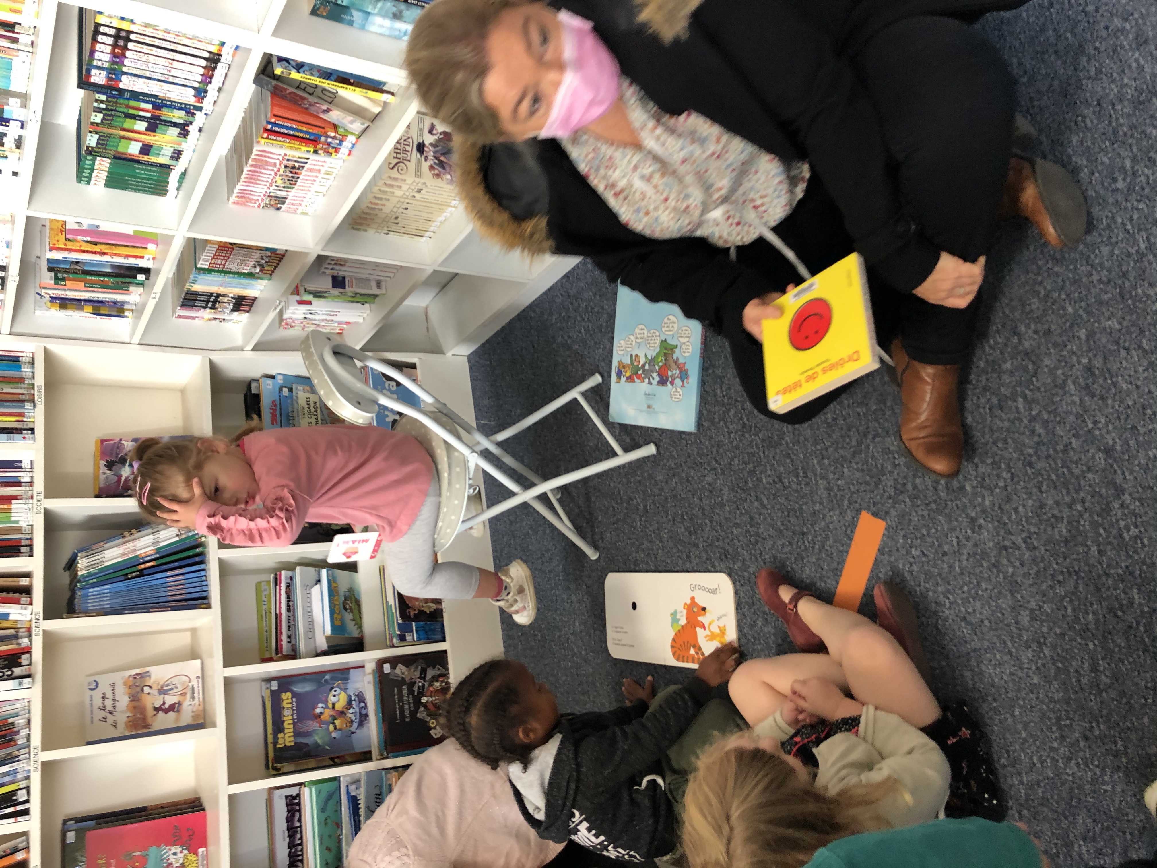 Tout d’abord la classe de TPS/PS/MS à la chance de se rendre à la bibliothèque un lundi sur deux.