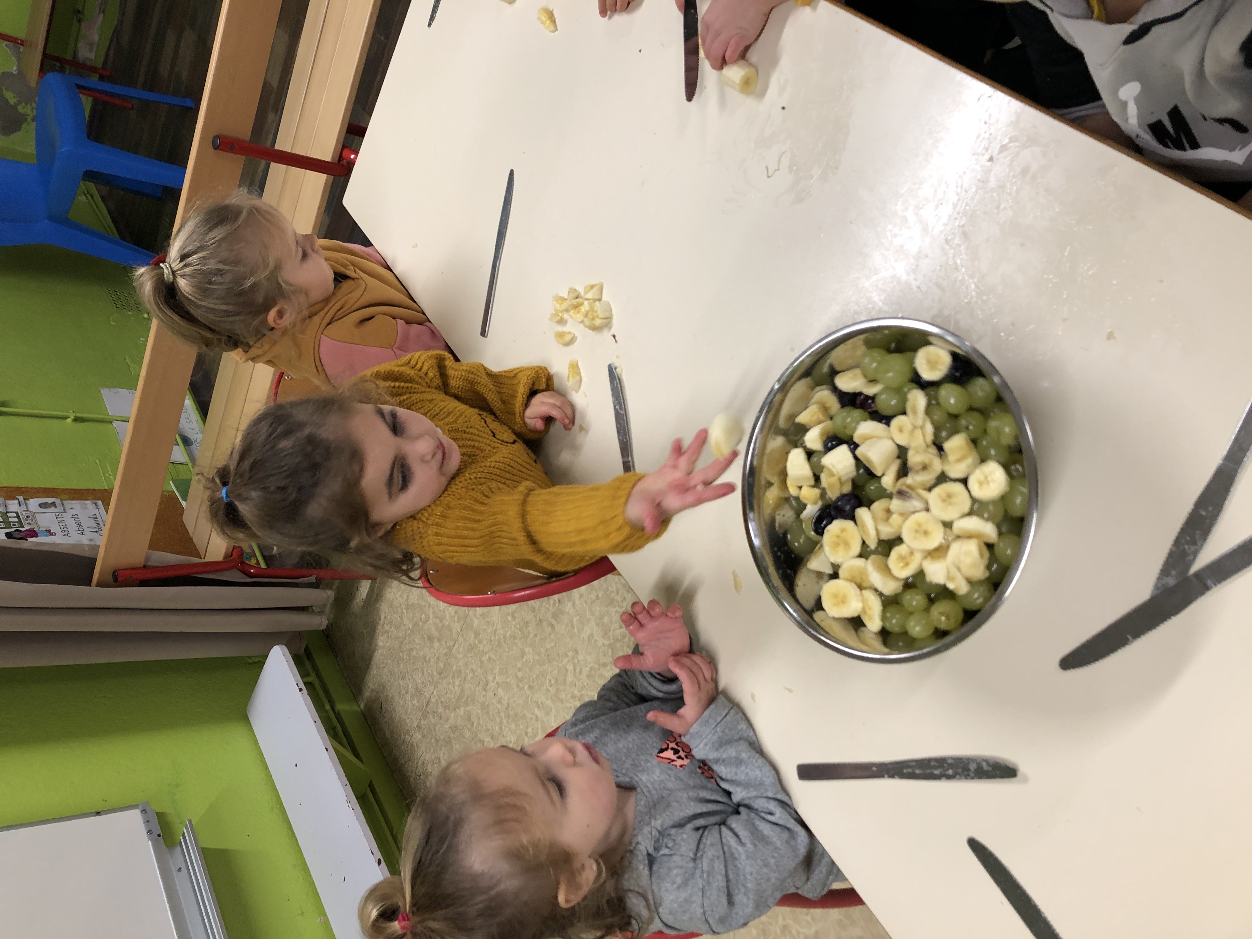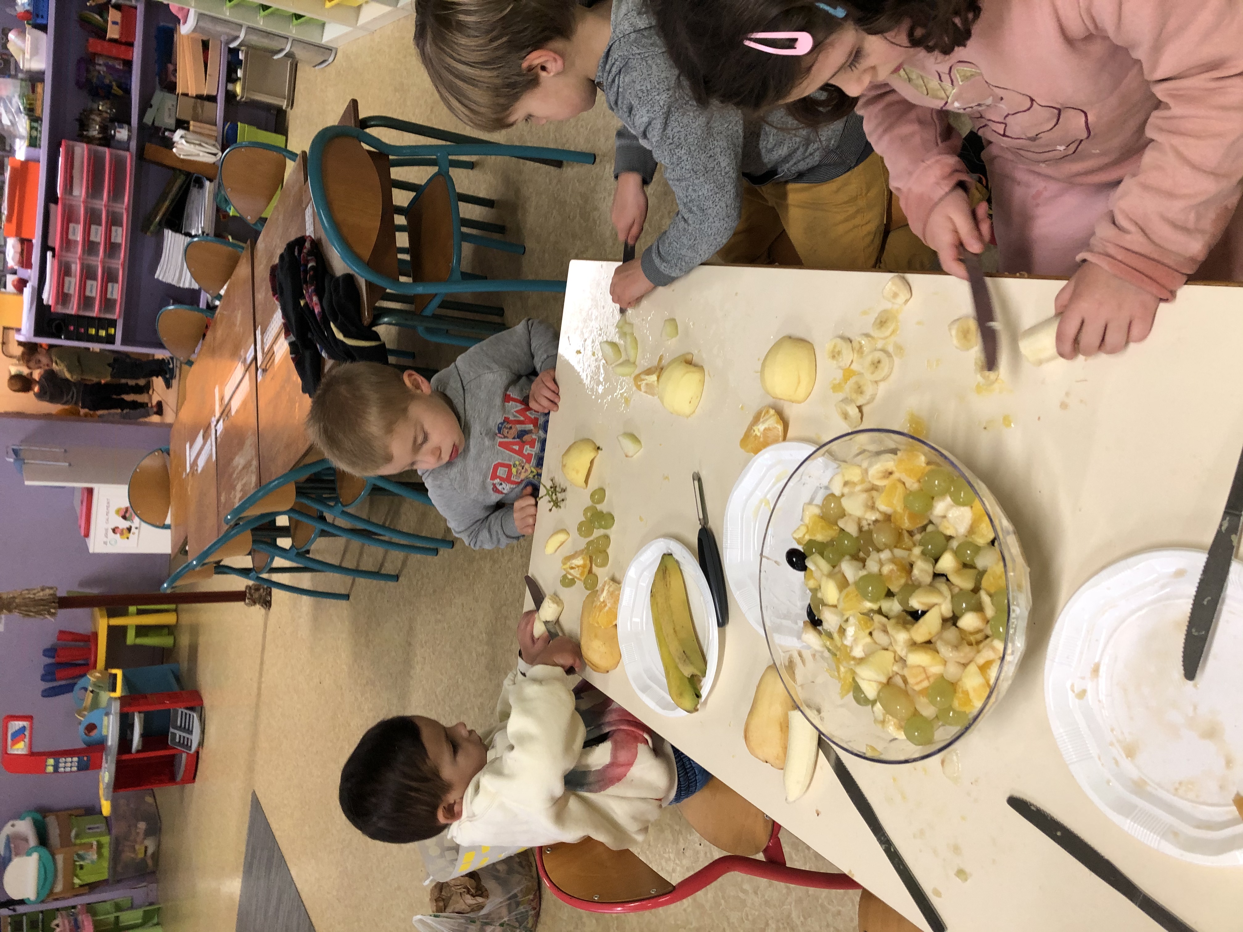 Après avoir épluché et découpé nous avons dégusté avec plaisir notre salade de fruits !