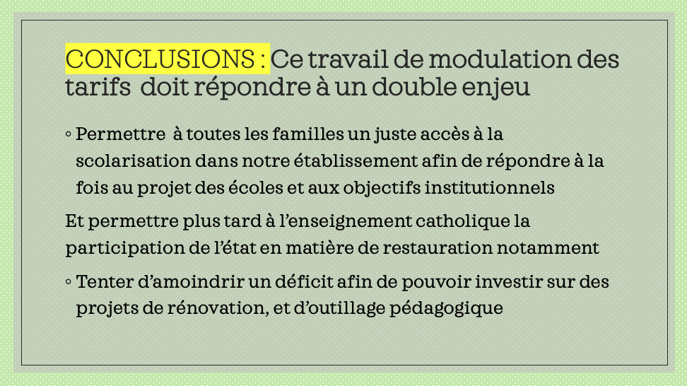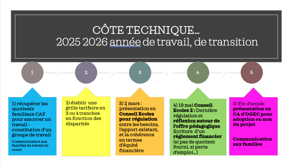Suite à un repas partagé, nous avons travaillé sur l’idée d’une modification tarifaire des contributions des familles pour les 2 écoles.