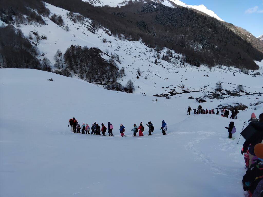 Les élèves de MS/GS/CP se sont rendu en montagne pour réaliser leur première « randonnée » en raquettes.