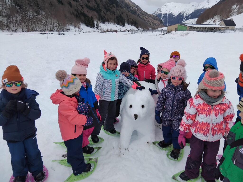 Après une petite marche et un pique-nique bien mérité, tous ont travaillé dur pour réaliser un ours en neige. Avec des caisses, des pelles et un peu de persévérance, tous étaient fiers du résultat.